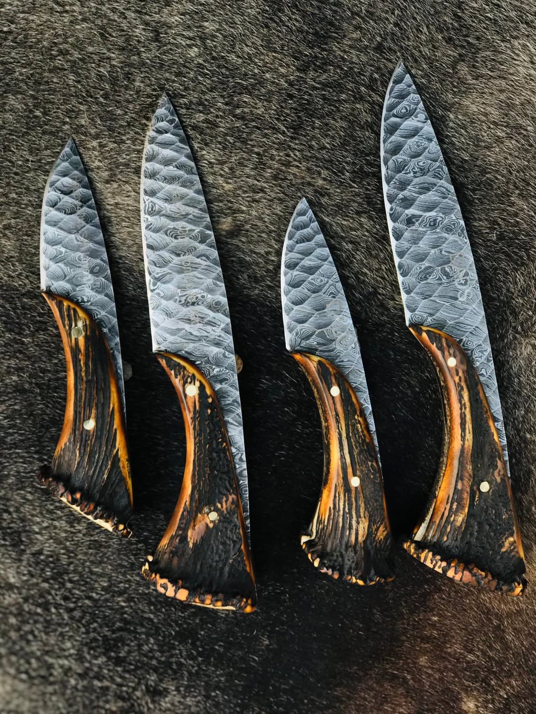 This 4-Piece Handmade Damascus Steel Knife Set showcases true craftsmanship and natural elegance. Each blade is hand-forged from high-quality Damascus steel, featuring distinctive layered patterns and hand grooves that ensure durability, sharpness, and long-lasting performance.