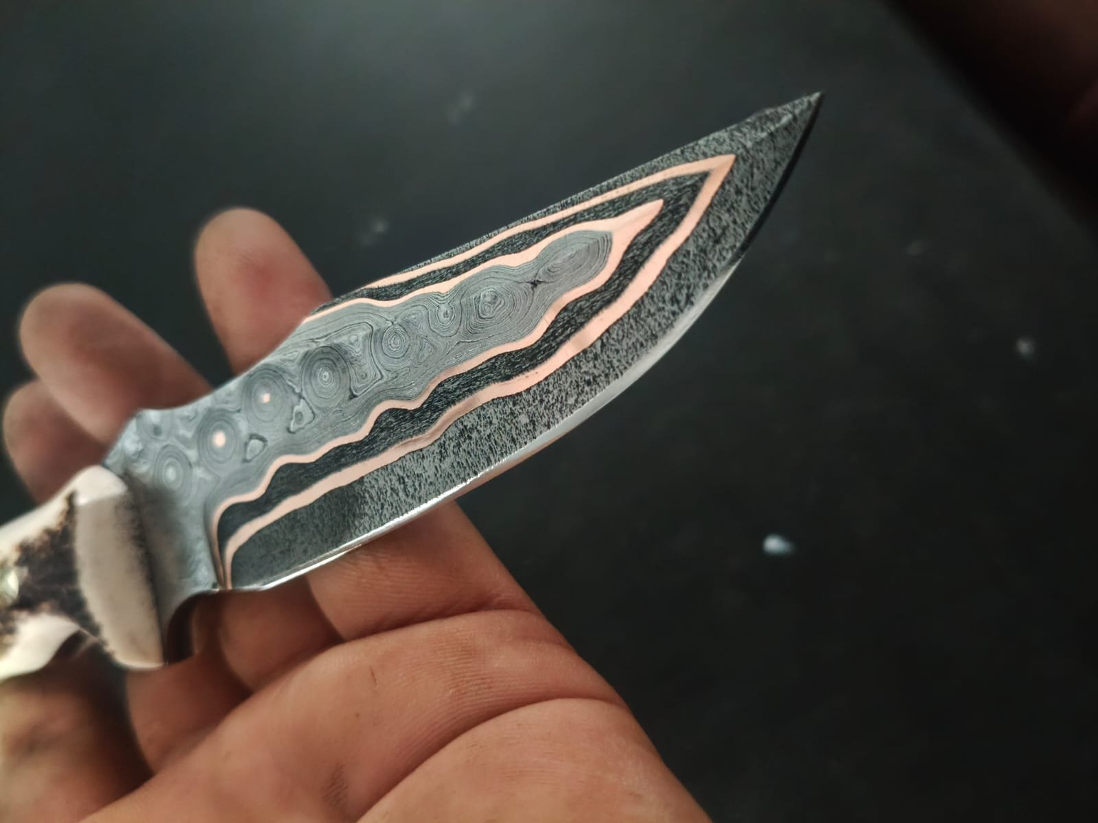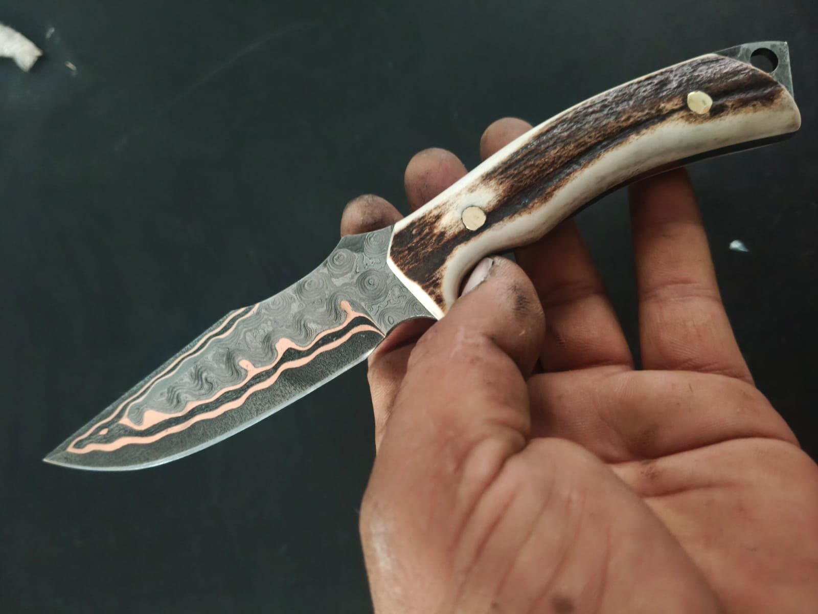 Handmade Copper Vein Damascus Hunter