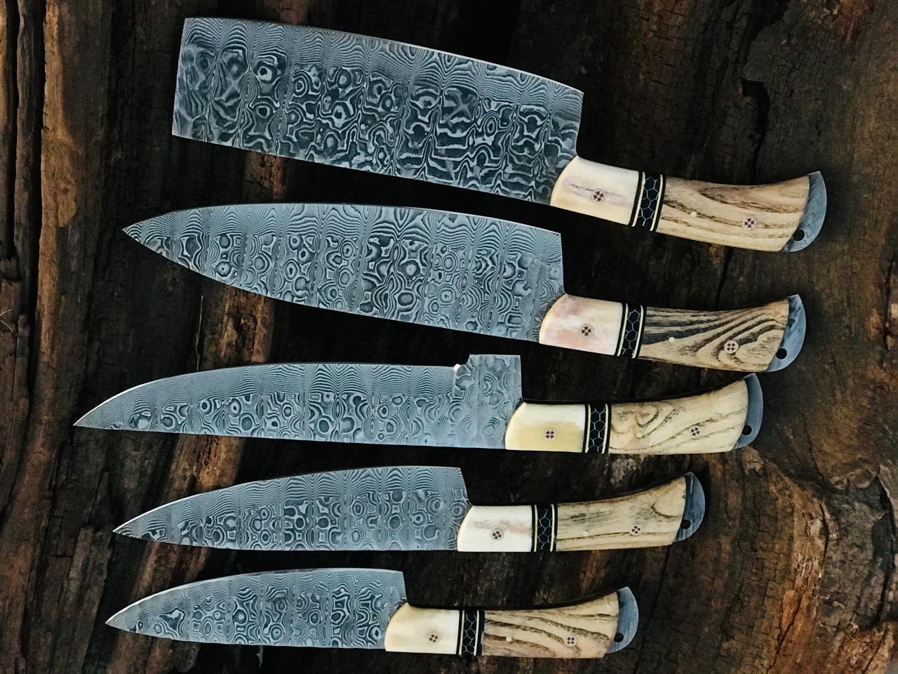 The handle is expertly crafted from a combination of natural wood and polished bone, creating a strong, balanced grip with a timeless, premium look. Each handle carries its own unique grain and texture, making every piece distinct and authentic. The ergonomic design ensures comfort, control, and stability in hand.